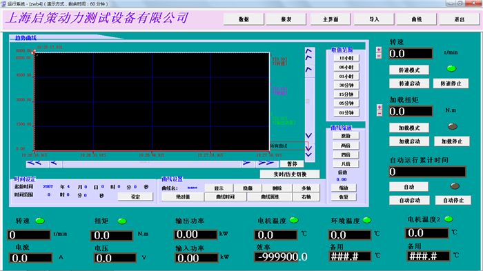 1、測試參數:轉速、 扭矩、 功率、電流、電壓、輸入功率、效率; 2、參數顯示方式: 計算機屏幕顯示; 3、數字設定扭矩值,DTC自動控制; 4、打印試驗報告; 5、空載試驗、加載試驗; 6、具備倒拖功能; 7、動態曲線顯示; 8、恒轉速控制模式、恒扭矩控制模式。 五、主要測量及顯示參數、范圍和精度