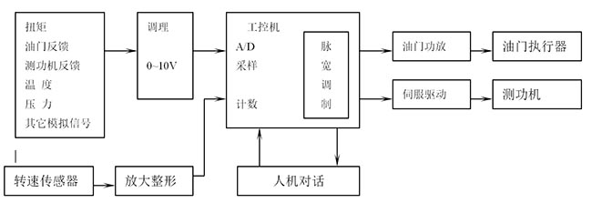 計算機根據(jù)采集的數(shù)據(jù),綜合用戶面板的給定狀態(tài),經(jīng)過一系列控制算法的運算,變成直接推動測功機的脈沖信號,實現(xiàn)了計算機直接數(shù)字控制(DDC)。