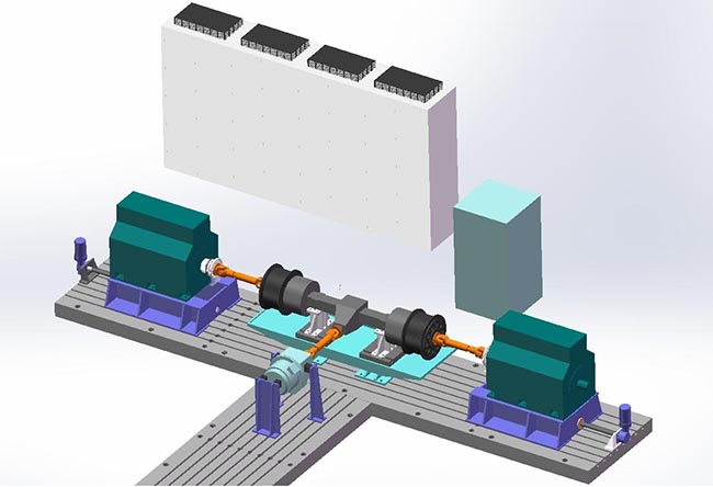 八、新能源汽車驅動橋試驗臺:主要針對電動車橋進行加載試驗,試驗內容包括:振動、噪音、效率測試、差速性能、溫升、耐久測試。